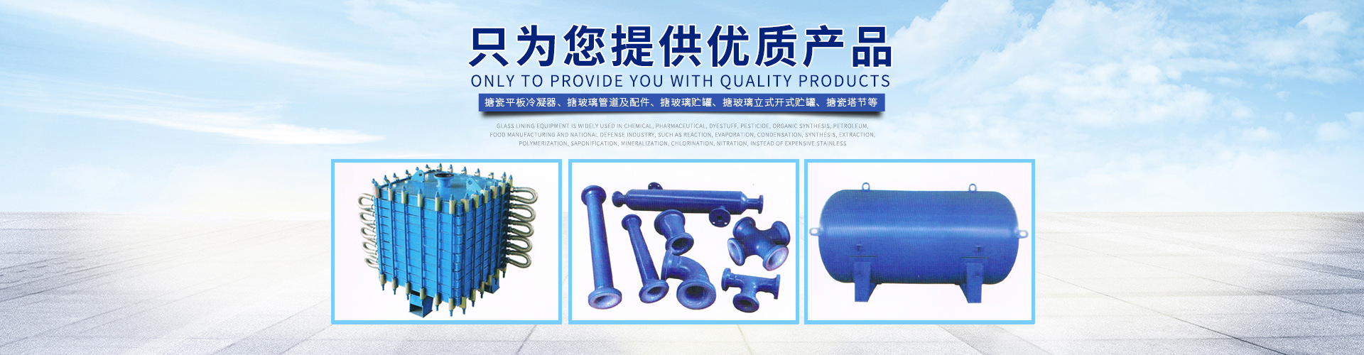 主要生产搪玻璃设备有:搪瓷平板冷凝器、搪玻璃管道及配件、搪玻璃贮罐、搪玻璃立式开式贮罐、搪瓷塔节、搪玻璃三孔片式冷凝器、不锈钢列管式冷凝器等。B系列搪瓷平板片式冷凝器(专利号:ZL 2018 2 1892684.0)与原碟片式冷凝器同等平方面积,冷却效率提高了40%左右,由于利用率高,即可减少平方数量,体积小,重量轻,安装方便。